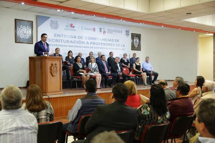 NOTICIAS 07/10/2019Entregan constancias de escrituración a profesores de la UMSNH La tarde de este lunes, el gobernador de Michoacán, Silvano Aureoles Conejo, encabezó la entrega de un total de 201 constancias de escrituración a profesores de la Universidad Michoacán de San Nicolás de Hidalgo (UMSNH).