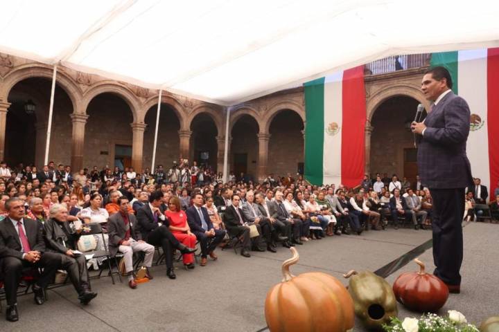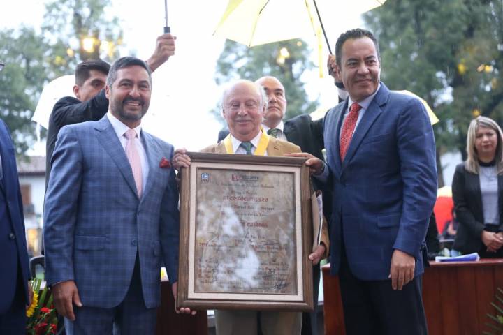 Con la representación del gobernador constitucional, Silvano Aureoles Conejo, el funcionario estatal entregó la XXVII presea Vasco de Quiroga al investigador mexicano Víctor Manuel Toledo Manzur.
