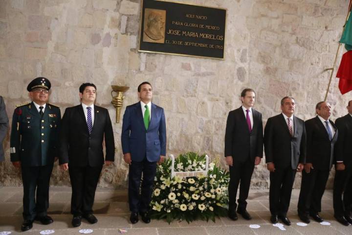 NOTICIAS 30/09/2019Encabeza Gobernador inicio de festejos por el 254 aniversario de Morelos Junto al secretario de Educación Pública, Esteban Moctezuma Barragán y el presidente municipal de Morelia, Raúl Morón Orozco, el Gobernador de Michoacán, Silvano Aureoles Conejo, encabezó el izamiento de las Banderas Nacional, de Michoacán y de Morelia, para dar inicio a la conmemoración del 254 aniversario del natalicio del Generalísimo, José María Morelos y Pavón.