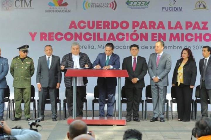 NOTICIAS 15/09/2019Firman Acuerdo para La Paz y Reconciliación en Michoacán Con el objetivo de construir una estrategia integral, que sume los esfuerzos del gobierno y todos los sectores de la sociedad, esta mañana el Gobernador Silvano Aureoles Conejo encabezó la firma del Acuerdo para La Paz y Reconciliación, un modelo aspiracional de atención al problema de la inseguridad y la violencia que puede ser replicable en los municipios y el paÃs.