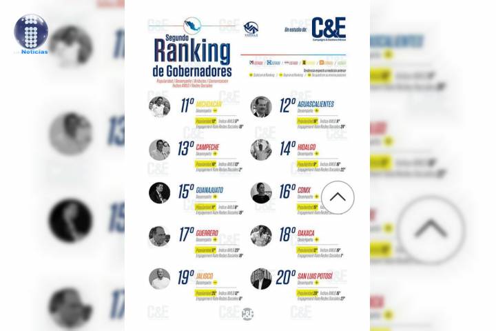 De acuerdo a la revista especializada en estrategia política, un total de 31 mandatarios fueron evaluados en esta encuesta a partir de su desempeño en seis vertientes: seguridad, empleo, manejo de las finanzas, superación de la pobreza, combate a la corrupción y obr... Ver más...