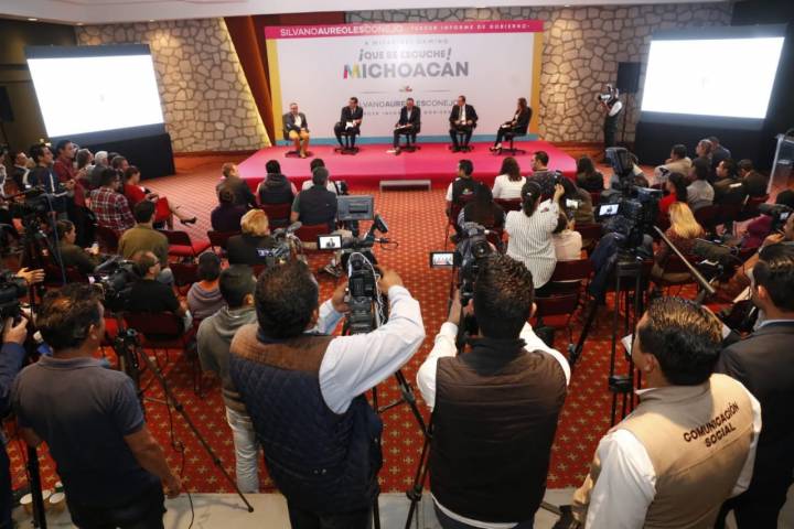 NOTICIAS 27/09/2018Medios de comunicación y sociedad, en diálogo directo con Gabinete de Gobernabilidad En el marco del Tercer Informe de Gobierno, y por instrucción del Gobernador Silvano Aureoles Conejo, se realizó el primer panel ? rueda de prensa con el Gabinete de Gobernabilidad, un formato innovador, dinámico y participativo donde medios de comunicación locales y regionales, sociedad civil y autoridades, sostuvieron un diálogo directo sobre el ejercicio de gobierno en estos primeros tres años.