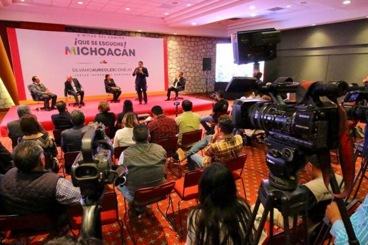 NOTICIAS 29/09/2018Con informe de avances y retos del Gabinete Económico, finalizan paneles ¡Que se escuche Michoacán! Con el panel-rueda de prensa ¡Que se escuche Michoacán!, integrantes del Gabinete Económico, realizaron un balance de avances y retos a tres años de la administración estatal ante representantes de los medios de comunicación y de la sociedad civil.