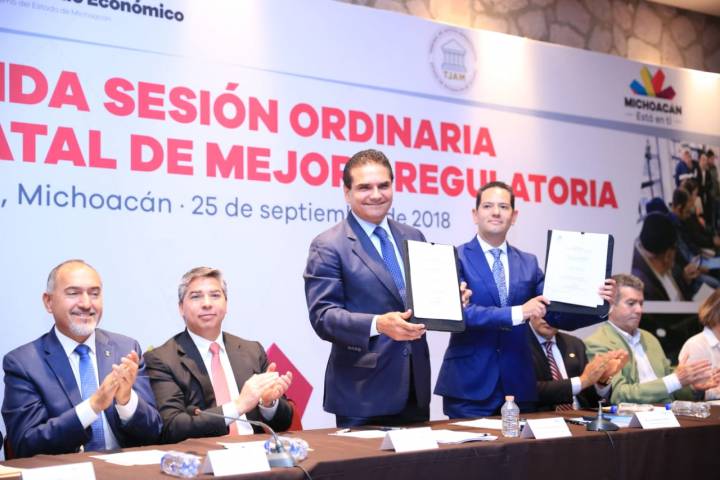 NOTICIAS 25/09/2018Michoacán será de los cinco estados con mayor simplificación en trámites: Silvano Que Michoacán en un año se encuentre dentro de los cinco estados con las mejores prácticas regulatorias y con mayor simplificación en trámites del país, es el reto que planteó el Gobernador Constitucional Silvano Aureoles Conejo, al presidir la Segunda Sesión Ordinaria del Consejo Estatal de Mejora Regulatoria.