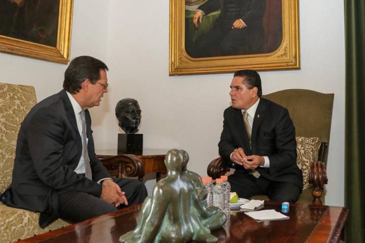 NOTICIAS 21/09/2018Busca Gobernador oportunidades de intercambio con Armenia El Gobernador Silvano Aureoles Conejo recibió en su despacho a Ara Aivazian, Embajador de Armenia en México, con quien dialogó sobre las oportunidades de intercambio entre Michoacán con el país euroasiático.