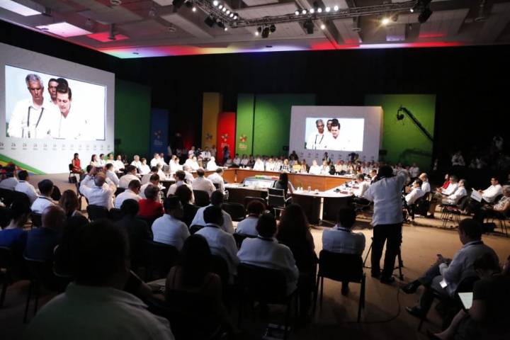 En este marco, se anunció el cambio de la estafeta en la presidencia de la AP, que deja el presidente de Colombia, Juan Manuel Santos Calderón, y al que arriba el titular del Ejecutivo de Perú, Martín Vizcarra Cornejo, qu... Ver más...