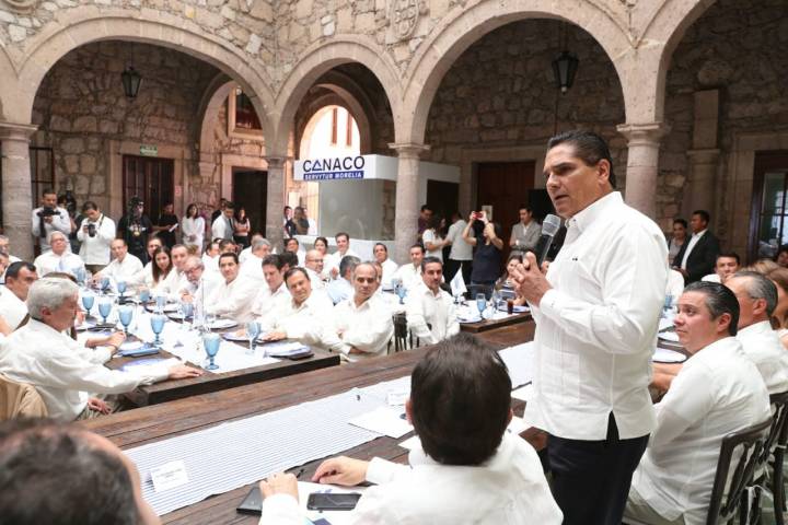 NOTICIAS 15/05/2018Sector empresarial, pilar para generación de empleos y servicios: SilvanoLa participación del sector empresarial, es uno de los pilares fundamentales para la generación de empleos y de servicios, acciones que dinamizan la economía y la competitividad en el estado, expresó el Gobernador Constitucional Silvano Aureoles Conejo al asistir como invitado especial a tomar protesta al Consejo Directivo de la Cámara Nacional de Comercio, Servicios y Turismo (Canaco ? Servytur) de Morelia para el periodo 2018-2019.