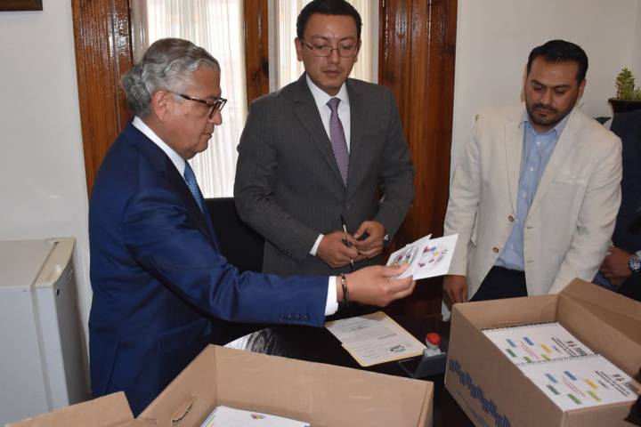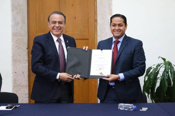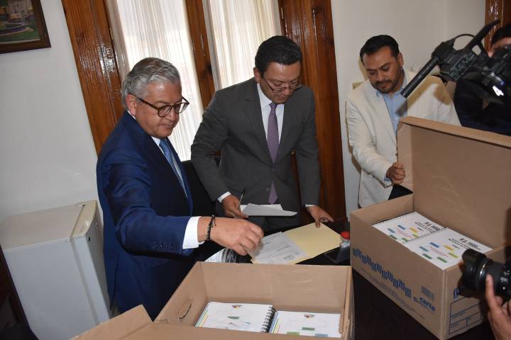 Ezequiel Hernández Arteaga, Secretario de Servicios Parlamentarios, recibió de manos de Carlos Maldonado Mendoza, Secretario de Finanzas, el documento ... Ver más...