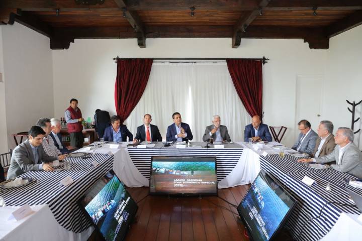 NOTICIAS 02/05/2018Tendrán empresas michoacanas participación en ZEE LC-La Unión: GobernadorEl Gobernador Constitucional Silvano Aureoles Conejo, se reunió con representantes de empresas michoacanas para revisar el proyecto de la Zona Económica Especial (ZEE) de Lázaro Cárdenas-La Unión y analizar la participación de los hombres y mujeres de negocios de la entidad en el esquema de administración integral que se requiere en la ZEE y su área de influencia.