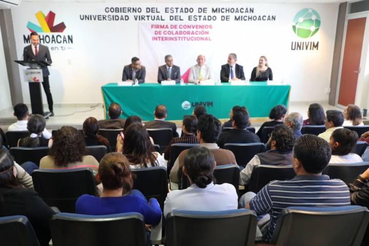 NOTICIAS 01/03/2018Firman SEE y UNIVIM convenio de colaboración y alianza para el fortalecimiento de la educación en MichoacánCon la finalidad de dar cumplimiento al interés del Gobernador del Estado, Silvano Aureoles Conejo, de promover y respaldar todas las acciones para mejorar la profesionalización docente, la SecretarÃa de Educación (SEE) y la Universidad Virtual (UNIVIM), firmaron este jueves el Convenio de Colaboración y Alianza para el Fortalecimiento de la Educación en Michoacán.