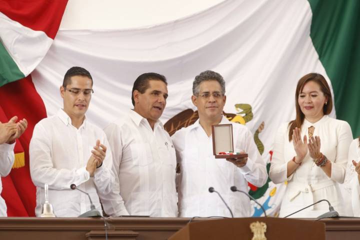 En sesión solemne del Congreso del Estado, por el CCIII Aniversario de la firma del Decreto Constitucional para la Libertad de la América Mexicana, el director del Colegio de Michoacán, José Antonio Serrano Ortega, recibió el reconocimiento y señaló que este tipo de condecoraciones invitan a la instit... Ver más...