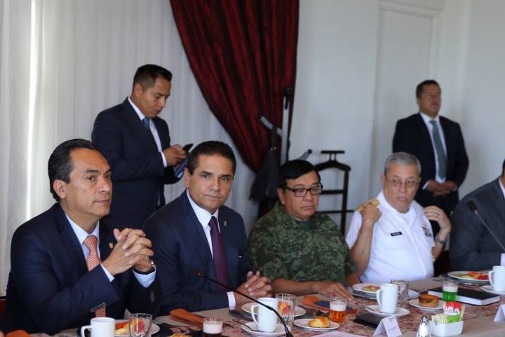 Acompañado de los secretarios de Gobierno, Adrián López Solís y de Seguridad Pública, Juan Bernardo Corona Martí... Ver más...