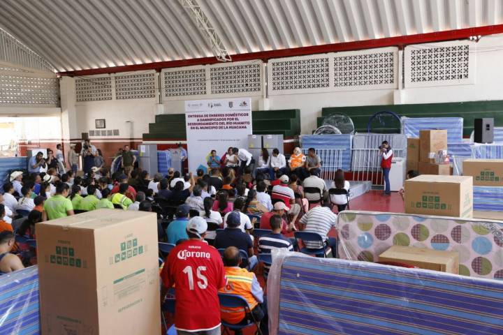 NOTICIAS 14/10/2017Entrega Gobierno del Estado apoyos a familias afectadas por desbordamiento en La Huacana Para apoyar a quienes el pasado fin de semana sufrieron los efectos del desbordamiento del río Huamito en el municipio de La Huacana, el Gobierno del Estado, a través de la Coordinación de Atención Ciudadana, entregó paquetes de enseres domésticos a 27 familias, apoyo que requirió una inversión de 300 mil pesos.