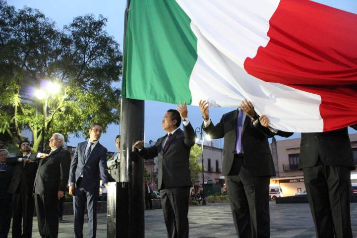 El secretario de Gobierno, Adrián López Solís, y el presidente de la Mesa Directiva del Congreso del Estado, Miguel Ángel Villegas Soto, encabezaron el evento, mismo que se realizó a las 07:20 horas, momento en el que hace 32 años ocurrió el movimiento telúrico.