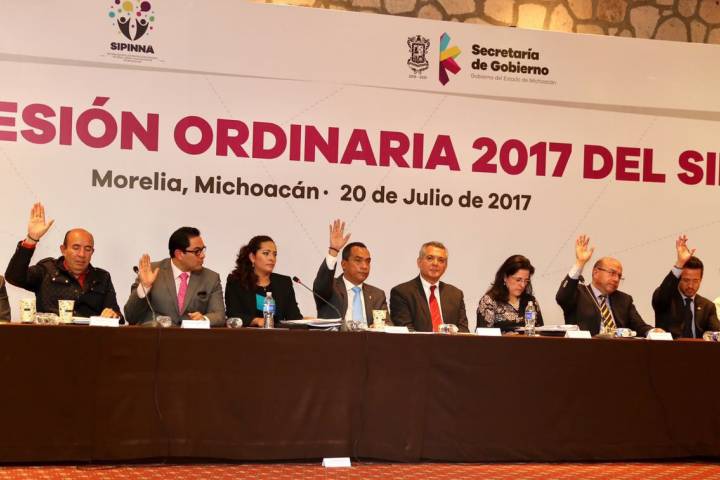 NOTICIAS 20/07/2017Avanza Michoacán en fomento de derechos de Niñas, Niños y Adolescentes: Adrián LópezEl secretario de Gobierno, Adrián López SolÃs, encabezó este dÃa, la Primera Sesión Ordinaria del Sistema Estatal de Protección Integral de Niñas, Niños y Adolescentes (Sipinna), la cual, sirvió de marco para revisar los avances y los compromisos para atender la responsabilidad de garantizar la difusión y la protección de los derechos de este sector de la población.