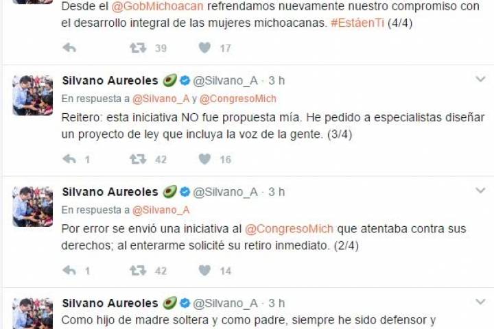 A través de su cuenta de Twitter, el gobernador del estado, Silvano Aureoles Conejo, aclaró la supuesta Reforma al Código Penal para castigar la interrupción del embarazo.