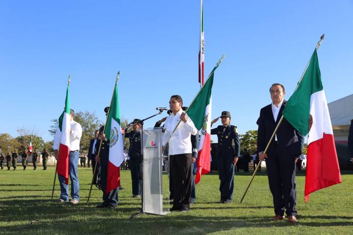 Al fungir como orador oficial en la ceremonia por el Día de la Bandera, el encargado de la política interna, con la representación del gobernador del Est... Ver más...