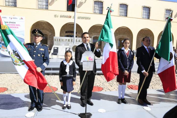 NOTICIAS 24/02/2017México exige unidad para defender soberanía y dignidad nacional: Silvano En estos tiempos y más que nunca, México exige de unidad, entrega, compromiso y patriotismo para defender, por encima de todo, la soberanía y dignidad nacional, expresó el Gobernador Constitucional Silvano Aureoles Conejo, durante la ceremonia cívica por la conmemoración del Día de la Bandera.