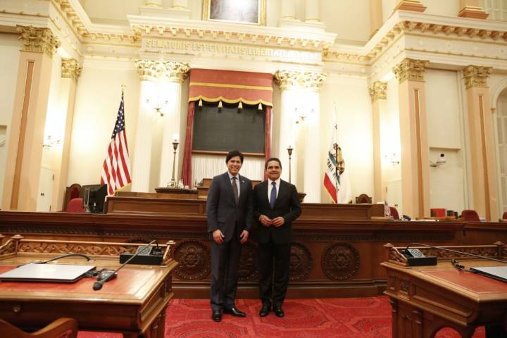 NOTICIAS 14/02/2017 Promoverán Silvano y Kevin de León acciones a favor de los migrantesComo parte de la gira de trabajo que lleva a cabo en Estados Unidos, la tarde de este martes el Gobernador de Michoacán, Silvano Aureoles Conejo, se reunió con el presidente del Senado de California, Kevin de León, con quien acordó la implementación de acciones conjuntas a favor de los migrantes.