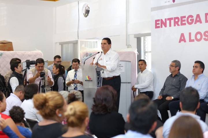 NOTICIAS 04/01/2017Entrega Gobernador enseres e inaugura obras en UruapanCon el compromiso de generar las condiciones de bienestar a la ciudadanía y resolver las necesidades básicas, este miércoles el Gobernador Constitucional, Silvano Aureoles Conejo, entregó enseres domésticos a familias que resultaron afectadas por las inundaciones y deslaves que se registraron en la pasada temporada de lluvias.