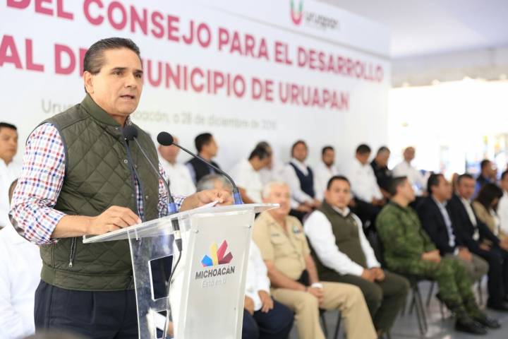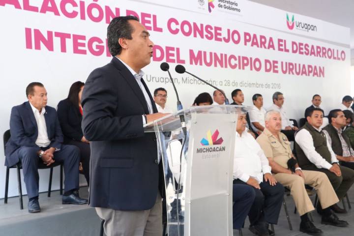 NOTICIAS 28/12/2016Instala Gobernador Consejo para el Desarrollo Integral de Uruapan A partir de hoy lo único que impera en Uruapan y en todo el estado es la ley y el respeto a las instituciones, por lo que pronto recuperaremos la paz y la estabilidad, así lo garantizó este miércoles el Gobernador Constitucional, Silvano Aureoles Conejo, durante la instalación del Consejo para el Desarrollo Integral de dicho municipio.