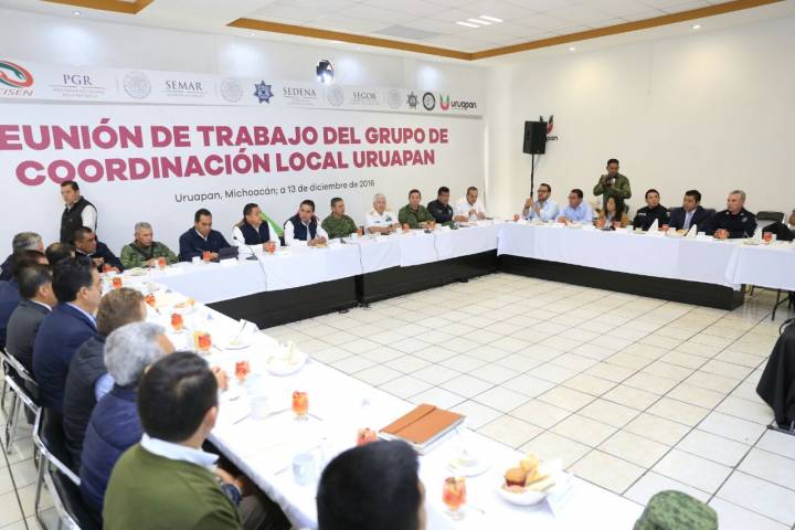 NOTICIAS 13/12/2016Fortalece Grupo de Coordinación Uruapan acciones de seguridad en la región El Gobernador Constitucional Silvano Aureoles Conejo, junto a los integrantes del Grupo de Coordinación Michoacán y el Grupo de Coordinación local, sesionó en el municipio de Uruapan con el objetivo de revisar y fortalecer las estrategias dispuestas en esta región.