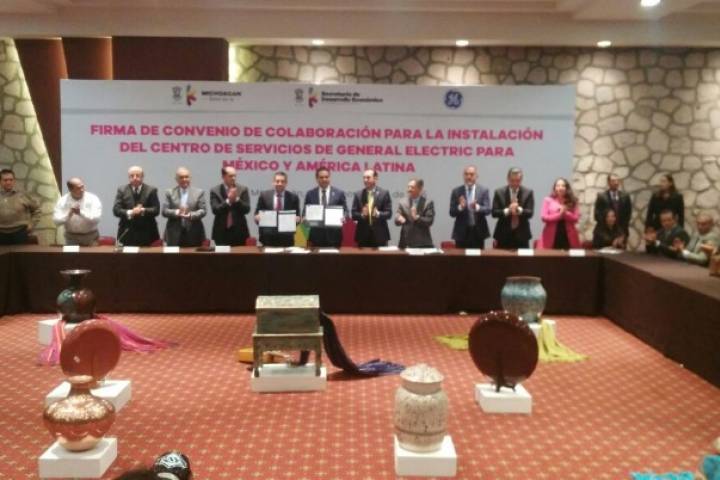 NOTICIAS 14/11/2016Invierte General Electric 20 mdd en MichoacánPor la ubicación estratégica de Michoacán y competitividad económica a nivel nacional, el Gobernador Constitucional Silvano Aureoles Conejo y el director de general de General Electric Power Services, Eduardo Quirarte Robert, firmaron el convenio de colaboración para la instalación en la capital del estado, del Centro de Servicios de General Electric para México y América Latina, en el que se invertirán 20 millones de dólares y en los p... Ver más...
