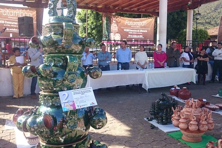 NOTICIAS 30/10/2016Premian a ganadores del Concurso de AlfarerÃa de PatambanEl Instituto del Artesano Michoacano (IAM), en coordinación con el Ayuntamiento de TangancÃcuaro y la Autoridad Comunal de Patamban, llevaron a cabo el XXXIII Concurso Artesanal de AlfarerÃa, en el que participaron 100 artesanos con 171 piezas inscritas en las categorÃas de juegos de té y agua, ollas, jarras, torres, miniaturas, platos, platones y varios. Se otorgaron 45 premios por un monto de 60 mil pesos, aportados por el IAM y el Gobiern... Ver más...