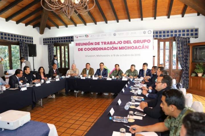 NOTICIAS 18/10/2016Sesiona Grupo de Coordinación Michoacán en UruapanPara dar puntual atención y seguimiento a los asuntos relacionados con la seguridad pública de la región, así como para afinar la estrategia coordinada con los tres niveles de gobierno, la mañana de este martes el Gobernador Constitucional del Estado, Silvano Aureoles Conejo, encabezó la sesión del Grupo de Coordinación Michoacán en la ciudad de Uruapan.