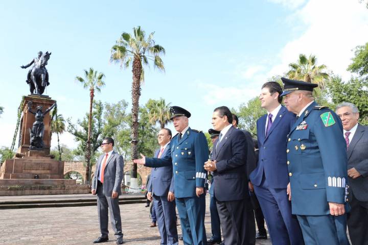 En la plaza Jardín Morelos, el mandatario estatal estuvo acompañado del mando especial para ... Ver más...