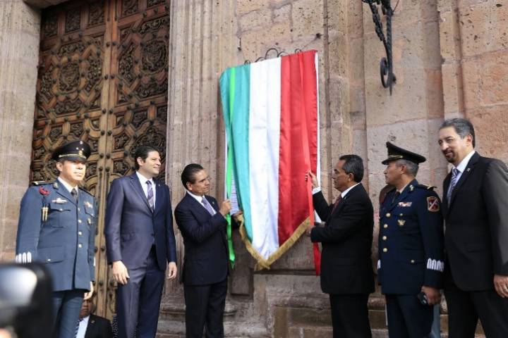 El Gobernador Constitucional Silvano Aureoles Conejo, asistió a la ceremonia de izamiento de la Badera Monumental en la Plaza Héroes de la Independencia en la capital michoacana.