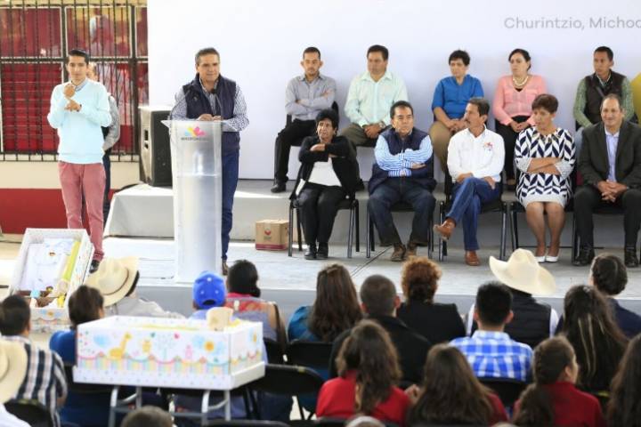 NOTICIAS 03/09/2016Michoacán construye programas sociales para disminuir la migración: SilvanoPara mejorar las condiciones de vida y disminuir los índices de migración en Churintzio, este sábado el Gobernador del Estado, Silvano Aureoles Conejo, entregó apoyos de diversos programas sociales en el marco de la inauguración de un aula, servicios sanitarios y la cancha deportiva en el plantel del Colegio de Bachilleres en dicho municipio, que tuvo una inversión de 1.5 millones de pesos en beneficio de 160 alumnos del plantel educativo.