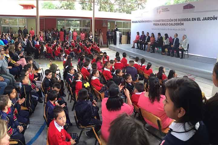 NOTICIAS 16/05/2016Reafirma Silvano compromiso por mejorar infraestructura educativaTras reafirmar su compromiso con mejorar la infraestructura educativa en la entidad, para que las niñas y niños cuenten con espacios dignos para estudiar, el Gobernador del Estado, Silvano Aureoles Conejo, inauguró esta mañana la rehabilitación general y construcción de bodega en el Jardín de Niños "Frida Kahlo Calderón", que tuvo una inversión superior al millón de pesos, en el marco del Programa Escuelas al CIEN.