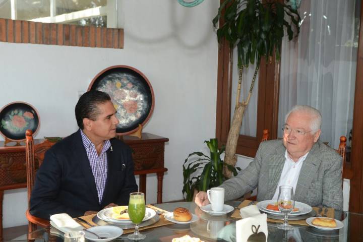 NOTICIAS 11/04/2016Intercambia Silvano Aureoles experiencias con Genovevo FigueroaPrevio a la gira de trabajo en el municipio de Yurécuaro, el Gobernador del Estado, Silvano Aureoles Conejo, sostuvo un encuentro con el ex mandatario michoacano, Genovevo Figueroa Zamudio.