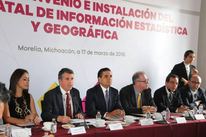 NOTICIAS 17/03/2016Firma Gobernador convenio con INEGI Con la finalidad el suministrar información de calidad, pertinente, veraz y oportuna para coadyuvar en el desarrollo de la entidad, el Gobernador de Michoacán, Silvano Aureoles Conejo y el presidente del Instituto Nacional de Estadística y Geografía (INEGI), Julio Alfonso Santaella Castell firmaron la renovación del Convenio e Instalación del Comité Estatal de Información Estadística y Geográfica.