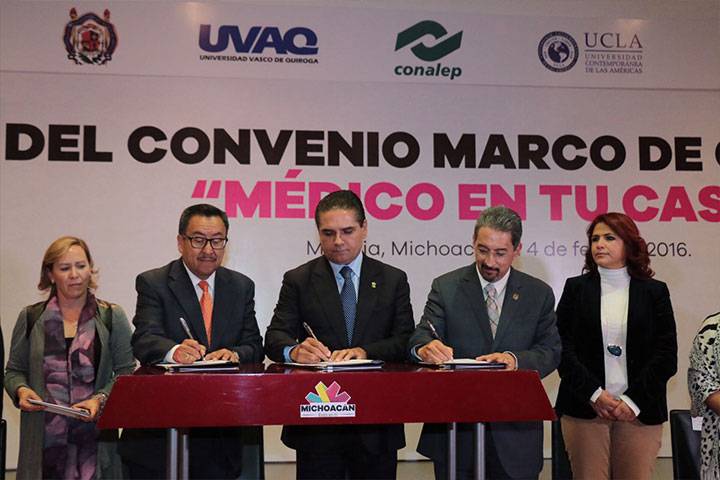 NOTICIAS 04/02/2016Universidades se suman al programa "Médico en tu casa"EL Gobernador del Estado, Silvano Aureoles Conejo, signó el convenio marco de colaboración con instituciones educativas tanto públicas como privadas que tienen carreras afines al área de la salud para la implementación del programa "Médico en tu casa".