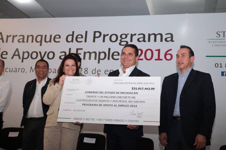 NOTICIAS 28/01/2016Generar empleo para lograr un mejor Michoacán: Silvano Lo más importante es que generemos empleo e ingreso diversificando las actividades productivas, afirmó el Gobernador del Estado, Silvano Aureoles Conejo, al recibir de manera simbólica recursos por el orden de los 31 millones 71 mil pesos para fortalecer las acciones de impulso al empleo por parte de la subsecretaria de Empleo y Productividad Laboral de la Secretaría de Trabajo y Previsión Social, Patricia Martínez Cranns, lo que representa... Ver más...