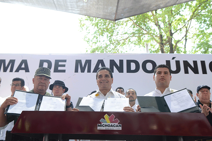 NOTICIAS 04/10/2015En Tuzantla la primer firma del Mando UnificadoEl Gobernador Constitucional del estado de Michoacán, Silvano Aureoles Conejo, firmó junto con Octavio Ocampo, presidente municipal de Tuzantla, y el Comandante de la Doceava Región Militar, General Felipe Gurrola Ramírez, el convenio de adhesión al Mando Único Policial, acto que representó el inicio de los trabajos que realizará su gobierno por consolidar una sola corporación policiaca estatal, y que sienta las bases de la estrategia in... Ver más...