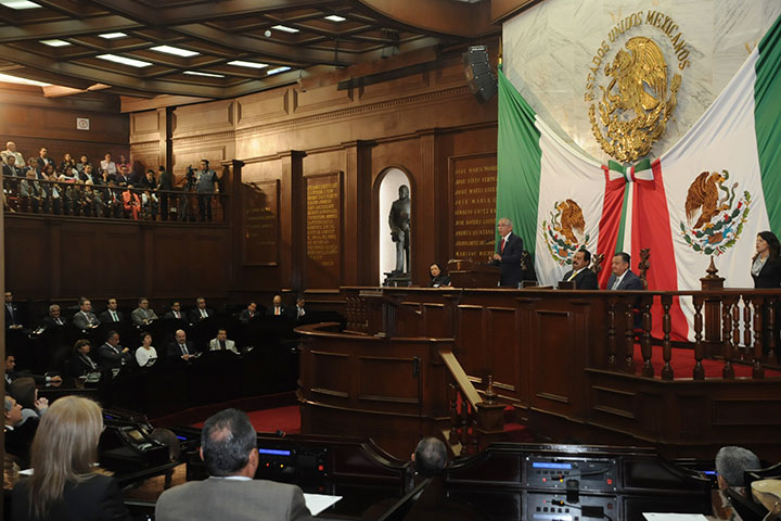 Salvador Jara Guerrero, gobernador sustituto de Michoacán, rindió su primer y único informe de actividades y las condiciones que guarda el estado. Presumió de un estado seguro al que llamo "Michoacán seguro".