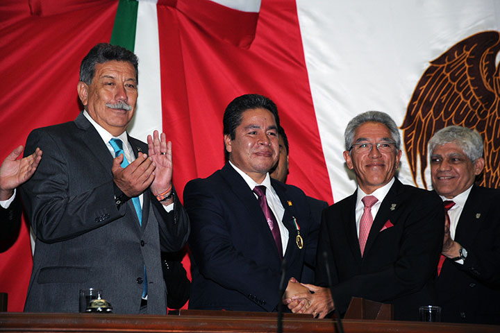 NOTICIAS 03/06/2015Asiste Salvador Jara a la entrega de la Condecoración Melchor OcampoCon la presencia del gobernador Salvador Jara Guerrero y del presidente del Supremo Tribunal de Justicia, Juan Antonio Magaña de la Mora, el Congreso del estado, presidido por Sarbelio Molina Vélez, entregó la condecoración Melchor Ocampo a la Facultad de Derecho y Ciencias Sociales de la UMSNH y al escultor José Luis Padilla Retana.