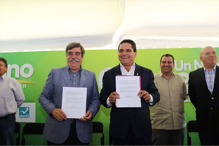 El candidato del Partido de la Revolución Democrática, Silvano Aureoles Conejo firma compromiso de trabajo con la Cámara de la Industria Constructora y promete que en su gobierno habrá cero "moches" tanto de funcionarios como con el crimen organizado.
