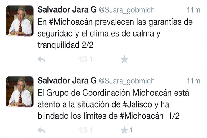 Mediante su cuenta de twitter @SJara_gobmich, el mandatario estatal además informó que el Grupo de Coordinación Michoacán se mantiene atento a la situación.