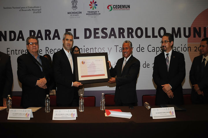 Con la representación del gobernador Salvador Jara Guerrero, el vocal Ejecutivo del Centro Estatal para el Desarrollo Municipal (Cedemun), Jaime Mares Camarena, presidió la entrega de reconocimientos y el taller de capacitación 2015 que, dentro del programa Agenda para el Desarrollo Municipal, se otorgaron a servidores públicos municipales.