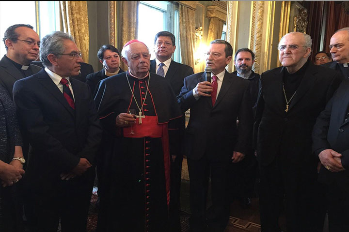 NOTICIAS 16/02/2015Embajador de México apoyará para posicionar imagen de Michoacán en El VaticanoLa Embajada de México ante la Santa Sede recibió hoy al recién creado Cardenal, Alberto Suárez Inda, y al gobernador Salvador Jara Guerrero, cuya presencia fue destacada por el diplomático Mariano Palacios Alcocer como una muestra de la voluntad del Gobierno del Estado a cooperar con la Iglesia en beneficio de los michoacanos.