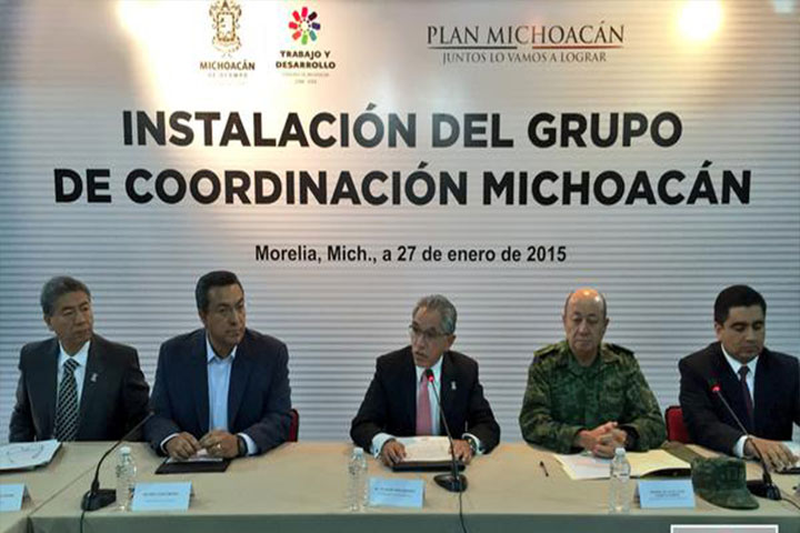 NOTICIAS 27/01/2015Inicia reunión instalar el Grupo de Coordinación Michoacánpara Arrancó de manera puntual la reunión para instalar el Grupo de Coordinación Michoacán, en el que participan autoridades de los gobiernos estatal y federal este martes al filo de las diez de la mañana.