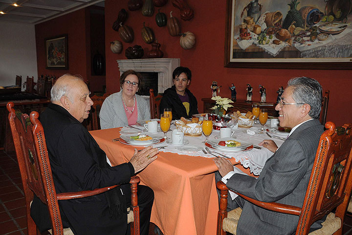 El gobernador de Michoacán, Salvador Jara Guerrero y su esposa Catherine Rose Ettinger McEnulty, recibieron en Casa de Gobierno a monseñor Alberto Suárez Inda, a quien felicitaron por su reciente nombramiento como cardenal de México, que le fue otorgado por el Papa Francisco I, tras desempeñarse como arzobispo de la Arquidiócesis de Morelia a lo largo de varios años.