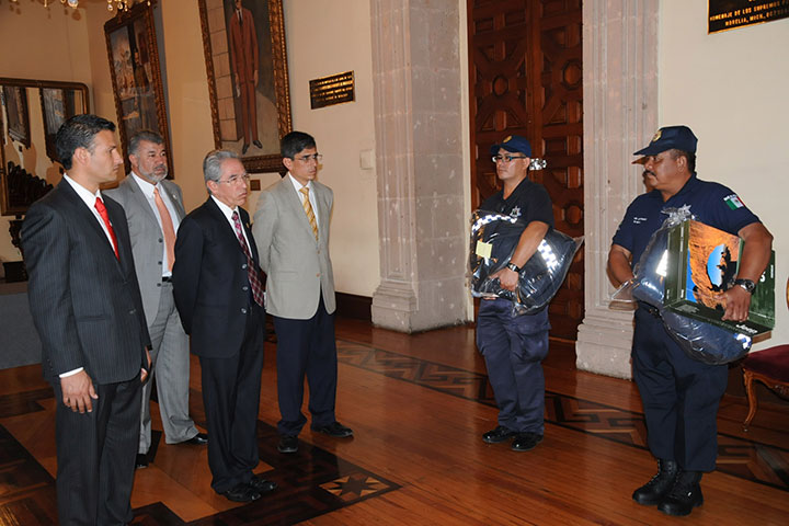 Durante la entrega de nuevos uniformes al personal encargado de resguardar las instalaciones de Pala... Ver más...