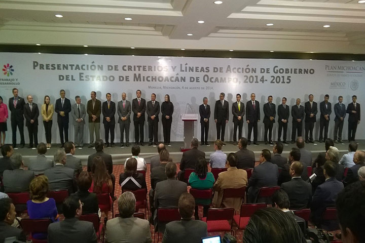 No se tolerara actos fuera de la ley aseguró el gobernador, Salvador Jara Guerrero durante la presentación de los Criterios y LÃneas de Acción de Gobierno del Estado de Michoacán 2014 y 2015.