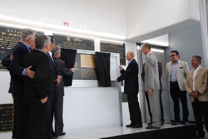 El gobernador del estado, Fausto Vallejo Figueroa, en compañía de Álvaro Dávila Alanís, presidente ejecutivo del Comité de Fútbol de Grupo Salinas y del presidente del Club Monarcas Morelia, Pablo Boy Espinoza, develó la placa conmemorativa del vigésimo quinto aniversario de inauguración del Estadio Morelos. De igual manera, hizo un recorrido por la muestra fotográfica que hace remembranza del proceso de construcción del llamado "Co... Ver más...