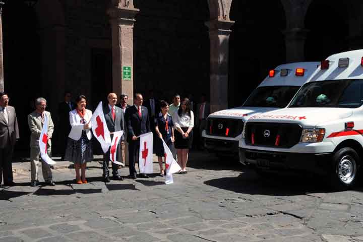 NOTICIAS 21/03/2014Ponen en marcha la colecta anual de la Cruz Roja El gobernador del Estado, Fausto Vallejo Figueroa y su esposa, la presidenta honoraria de la Cruz Roja Mexicana delegación Michoacán, Patricia Mora de Vallejo, encabezaron la ceremonia de inicio de la Colecta Anual de dicha institución, cuyo lema es "Cada moneda cuenta, cuando hay ayuda, hay esperanza, dona", arranque en que el mandatario estatal hizo entrega de cinco ambulancias equipadas, cuya inversión fue de 3 millones 900 mil pesos, de l... Ver más...